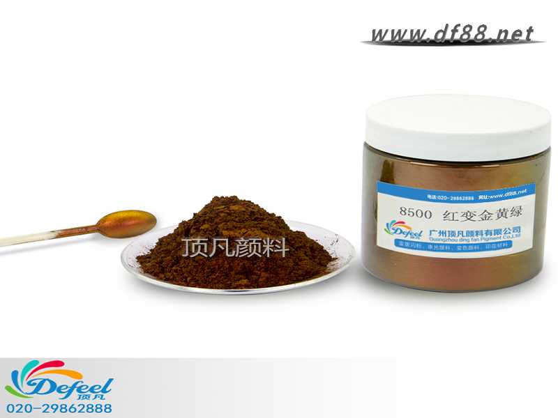 8500 紅變金黃綠變色龍粉可應用于涂料、油墨、塑料各產業,產品之設計大多以室內(無紫外光之環境)與室外(有紫外光之環境)有顏色變化為訴求。